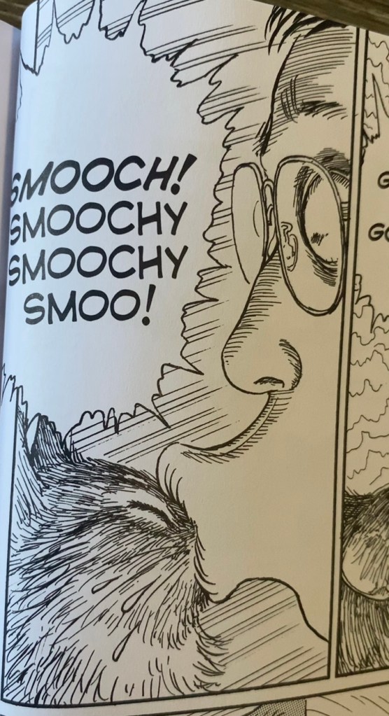 For example, one of my favorites moments from the manga comes shortly after Ito introduces Mu. When the young Norwegian Forrest cat is brought home, J-Kun becomes so overwhelmed with love for Mu that the man’s face starts to contort into a drooling, monstrous creature and he yells “I’m going to gobble you up!”